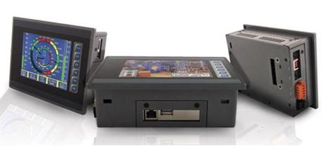 The RX371 features a bright new 5.7” QVGA,TFT screen with over 32K colors. The screen is bright with a 700 NIT brightness rating. RX371 is fast and has a typical logic scan rate of 0.2mS/K. RX371 has advanced control capabilities including floating point, multiple autotuning PID loops and string handling capabilities. In addition, the RX371 features embedded Ethernet and supports many Internet capabilities such as remote data access, programming, hosting HTML-based web pages, and FTP file transfer. Plus, it has a built-in MicroSD® memory slot that allows users to easily store machine or process data and screen captures (up to 2GB). Programs can be updated and loaded through MicroSD®…a real advantage for OEMs or those supporting distant sites.